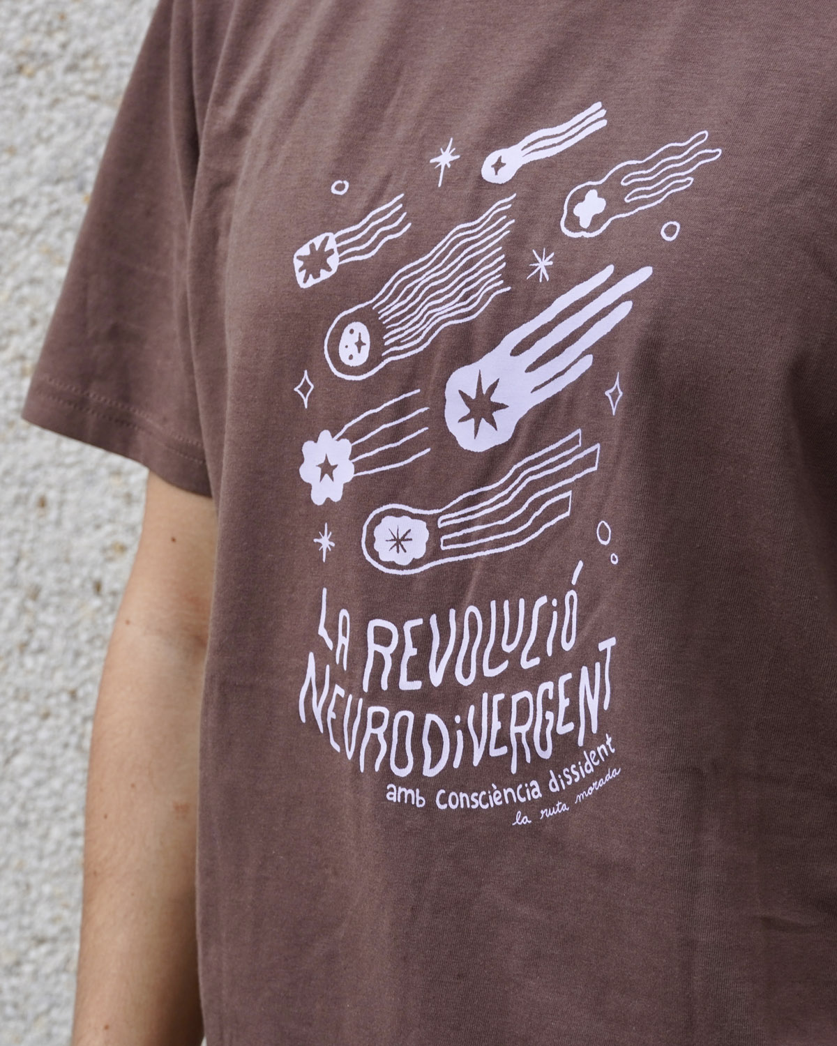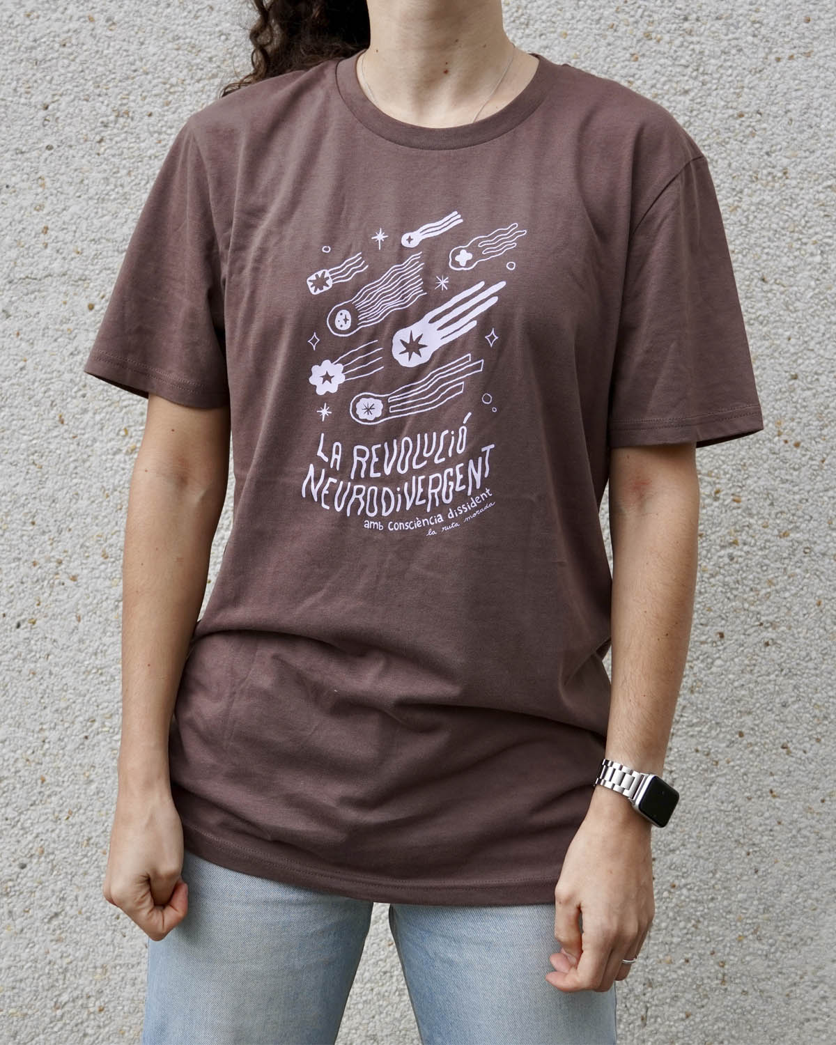 Aquesta samarreta és solidària amb La Ruta Morada, una associació creada per persones neurodivergents, amb mirada feminista, interseccional i anticapacitista. La seva tasca és la d’empoderar dones i dissidències autistes, generant xarxes de suport i transformant els espais perquè siguin més accessibles i segurs.